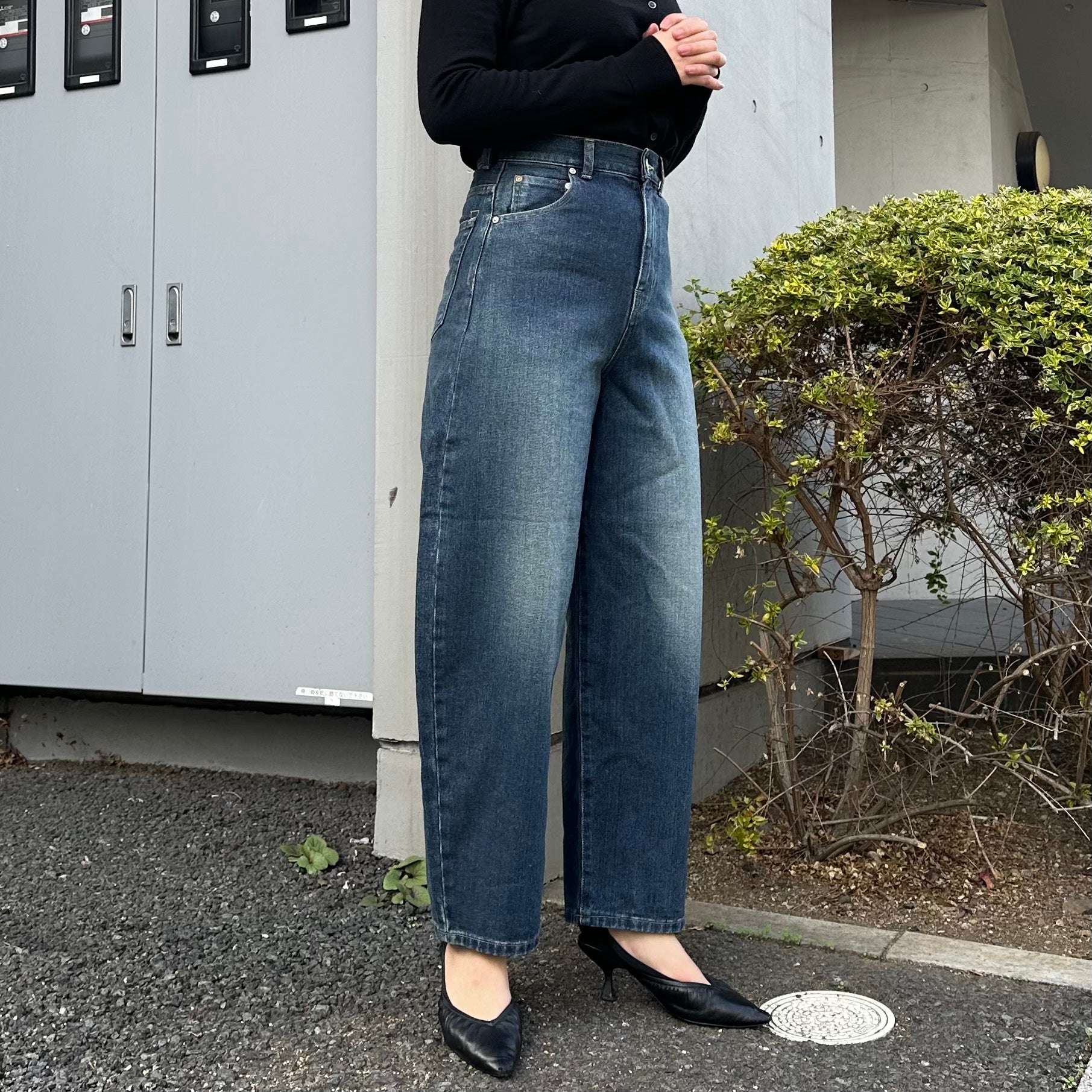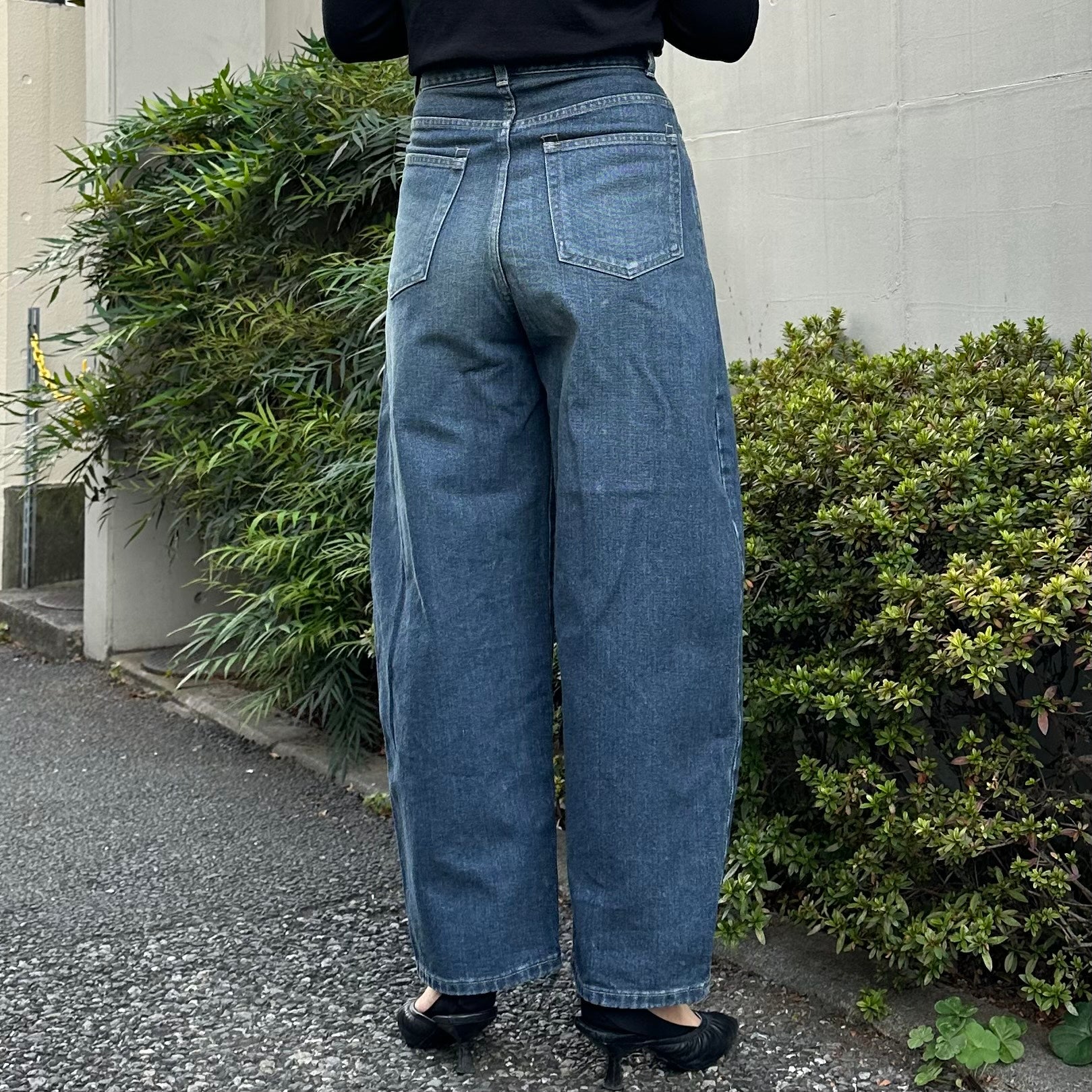 独特の光沢感と滑らかな手触りが特徴の左綾デニム生地を使用した、曲線的なカーブシルエットが特徴のジーンズです。